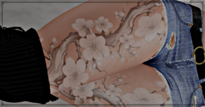 SukiNeko – Sakura Leg B&W Tattoo![]()